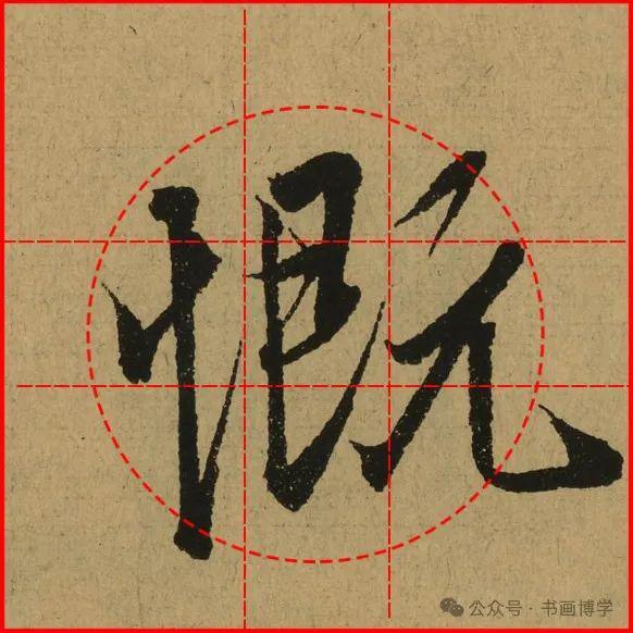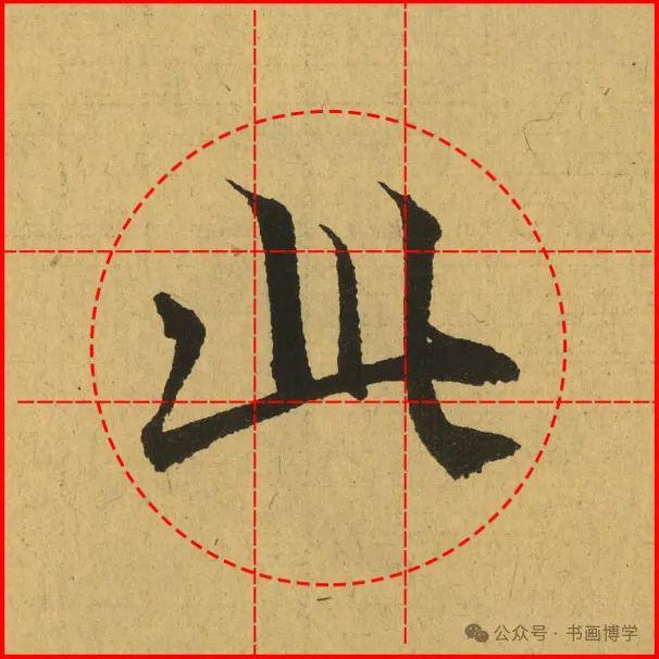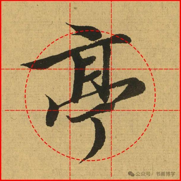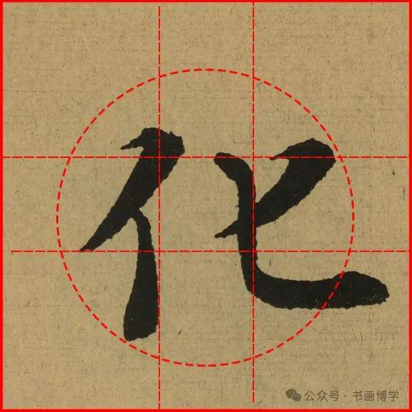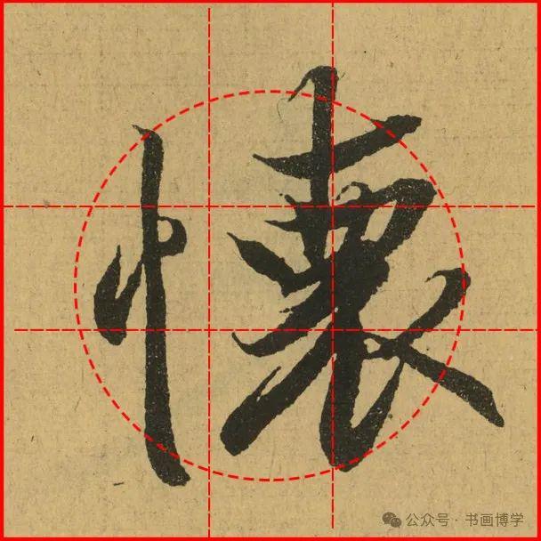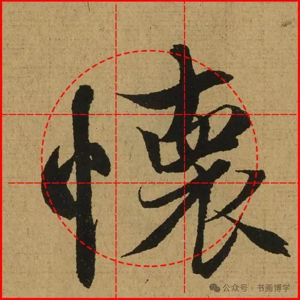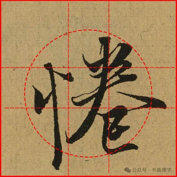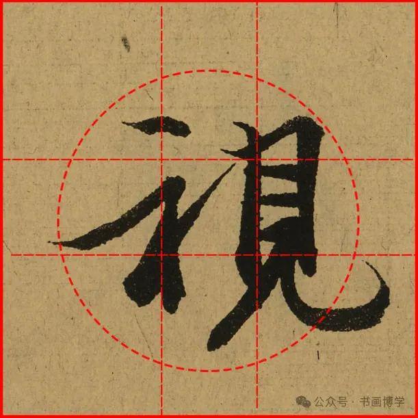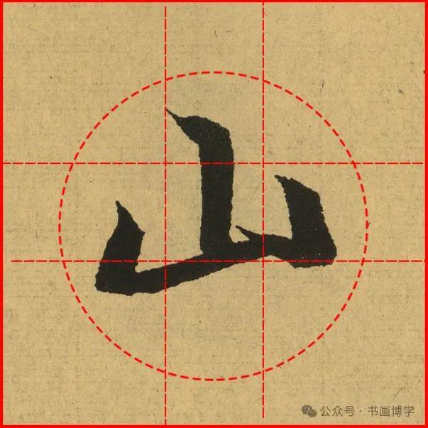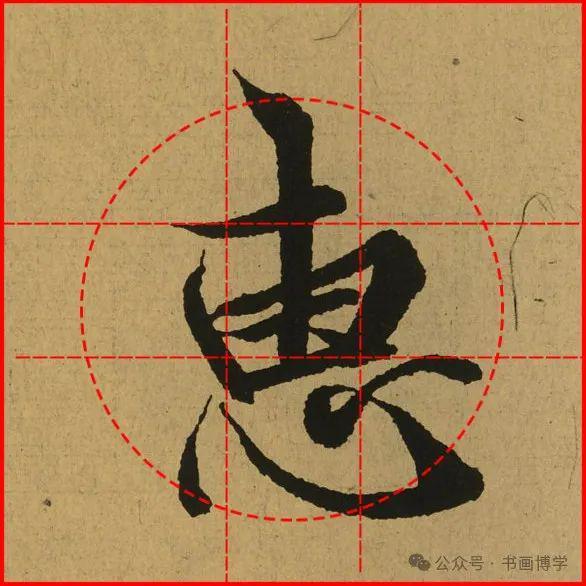 这是由启功先生发明的黄金律练字法,仔细观察会发现其中每个字的重心点在哪,相比于普通九宫格,中心会较为紧凑。然后下面的格子是在其基础上增加一个圆形虚线,便于初学者掌握字形大小而临习。