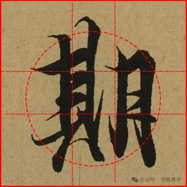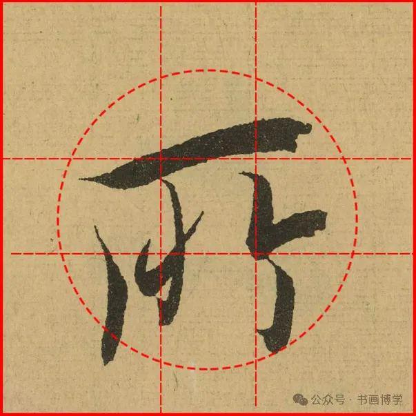 在实际的应用当中,该方法要求笔画轨迹经过黄金区域而非精准落点,这种弹性规则为书者保留了创作空间,使字体在遵循数理规律的同时不失个性表达。对比田字格强调对称、回宫格注重外廓的特点,黄金律结字法更注重内在结构的动态平衡,通过0.618的黄金比例协调笔画疏密,使楷书结构在严谨中透出生机。